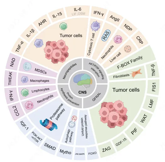图1. 癌症恶病质多机制相互作用示意图[6]