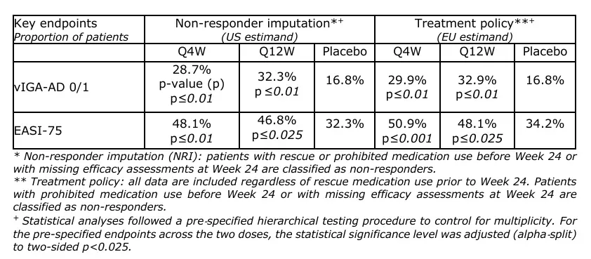 赛诺菲的积极III期结果说明,OX40L单药路径具备进入后期竞争的实力。但市场关注点已不再只是“是否有效”,而是“能否明显优于现有标准治疗”。赛诺菲同时披露,Amlitelimab给药间隔可拉长至12周,这一特点有助于提升依从性与用药便利性。