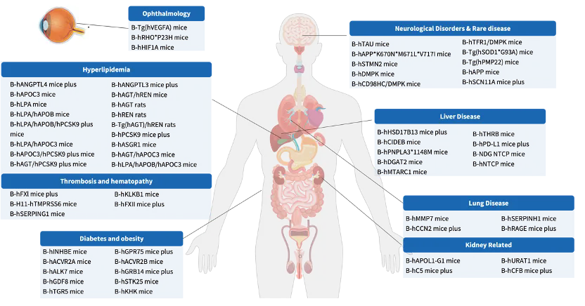 百奥赛图小核酸药物相关靶点人源化小鼠模型列表(部分展示)