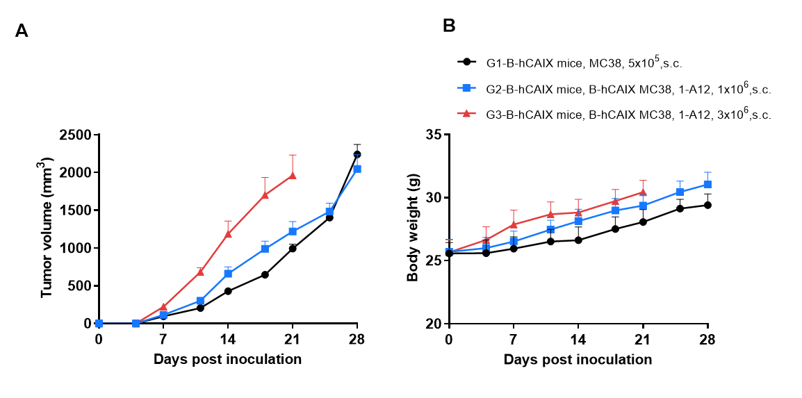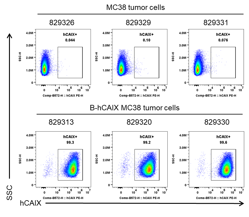 • Application: The B-hCAIX MC38 tumor models can be used for preclinical evaluation of antibody drugs targeting human CAIX.