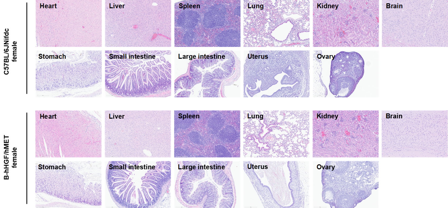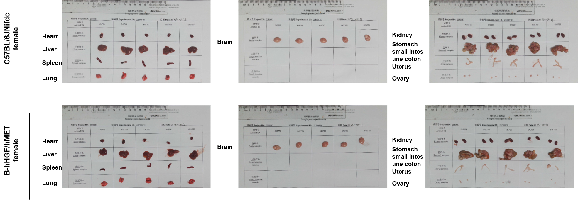 The organs of female C57BL/6JNifdc mice and B-hHGF/hMET mice  (7-week-old, n=5).