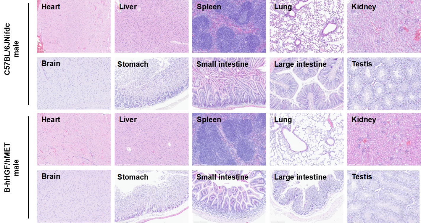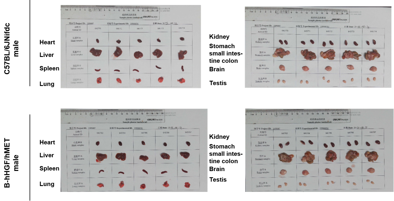 The organs of male C57BL/6JNifdc mice and B-hHGF/hMET mice  (7-week-old, n=5).