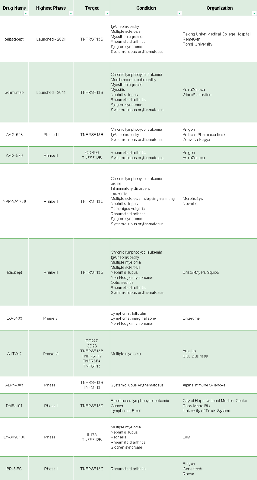 [1]. Samy E , Wax S , Huard B , et al. Targeting BAFF and APRIL in systemic lupus erythematosus and other antibody-associated diseases[J]. International Reviews of Immunology, 2017.
