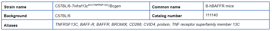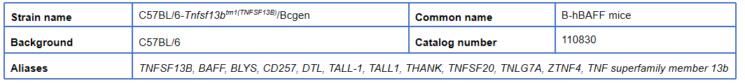 BioMice百奥动物自主开发了人源化B-hBAFF mice、B-hBAFFR mice 助力药物研发。