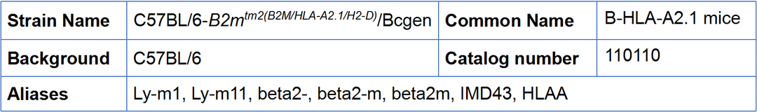 针对HLA-A2.1分子机制研究的需求,BioMice百奥动物自主研发了B-HLA-A2.1 mice和B-NDG HLA-A2.1 mice,助力HLA-A2.1分子研究,为临床前药效评估提供了优质模型。