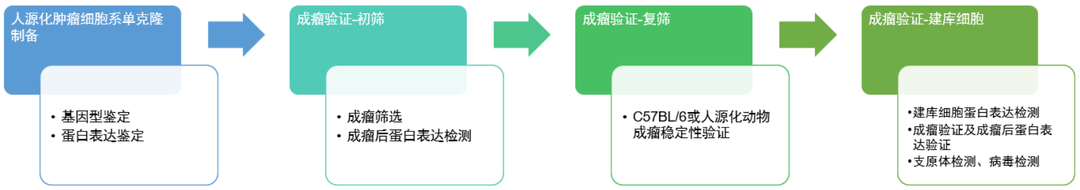 百奥动物自主研发了100余种人源化肿瘤细胞系,为临床前肿瘤免疫相关药物筛选提供了更多的选择,而如何筛选到稳定用于药效评价的人源化肿瘤细胞系,百奥动物有自己特有的研发流程,在产品研发过程中每个阶段都有严格的质量控制,且经过多次数据验证,最终获得稳定的肿瘤模型。