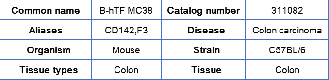 B-hTF MC38细胞系高表达人源TF蛋白,MC38野生细胞系不表达鼠源及人源TF蛋白。