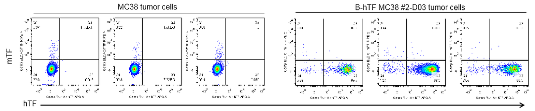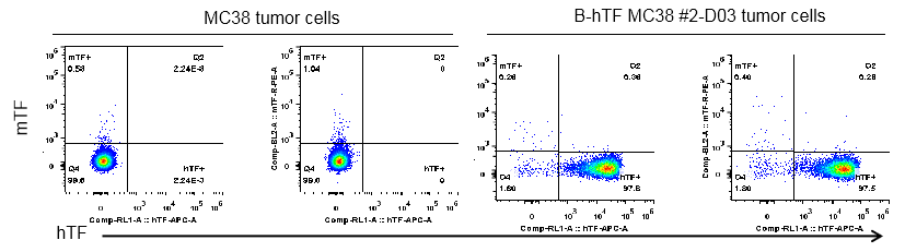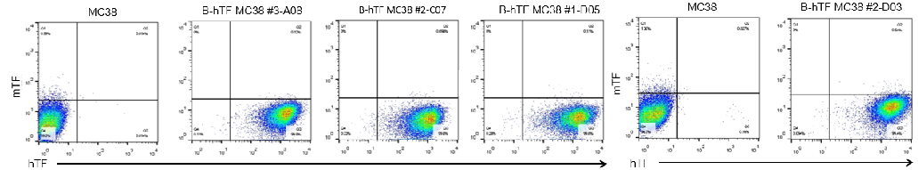 图4. 流式细胞术检测B-hTF MC38及MC38细胞系hTF蛋白表达情况