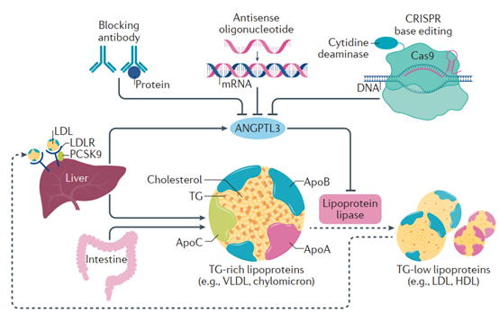图2. ANGPTL3的生物学功能及其抑制剂药物的工作机制[3]