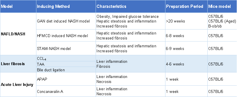 BioMice百奥动物利用不同的诱导方法分别构建了非酒精脂肪肝病小鼠模型(NAFLD/NASH)、肝纤维化小鼠模型及急性肝损伤小鼠模型,同时也自主开发了肝脏疾病相关的靶点人源化小鼠,助力相关药物临床前研究。