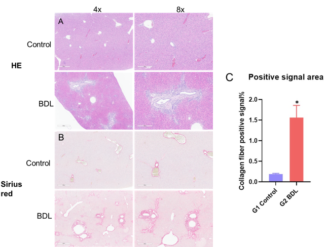 胆管结扎诱导的肝纤维化模型的组织学评估