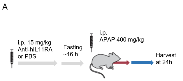 乙酰氨基酚(APAP)诱导的B-hIL11RA小鼠肝损伤模型