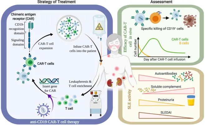 图3.CD19 CAR-T细胞治疗SLE患者的流程[5]