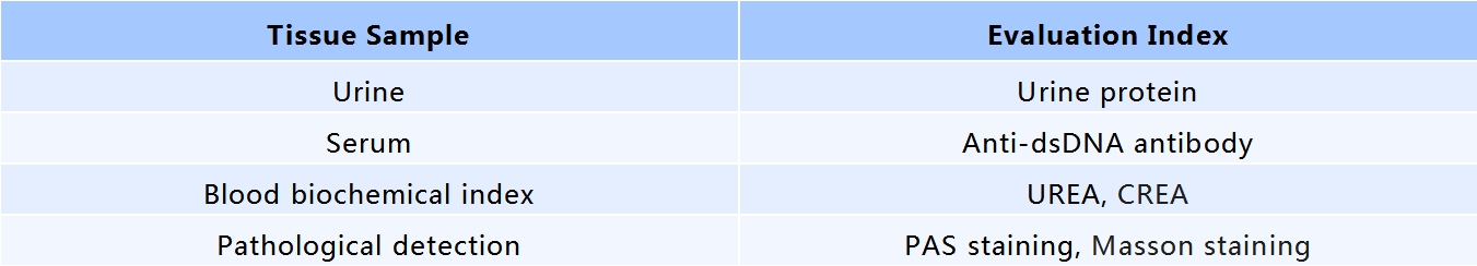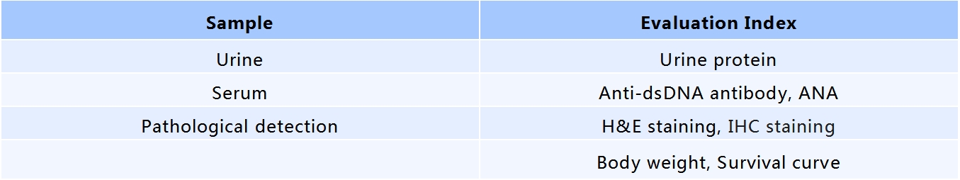 MRL/lpr小鼠是常见的自发SLE小鼠模型表现为淋巴结肿大, T细胞自身反应性增强,有自身抗体产生及肾小球肾炎的发生;可用于评估鼠源抗体及鼠CAR-T/CAR-NK细胞治疗SLE的效果。