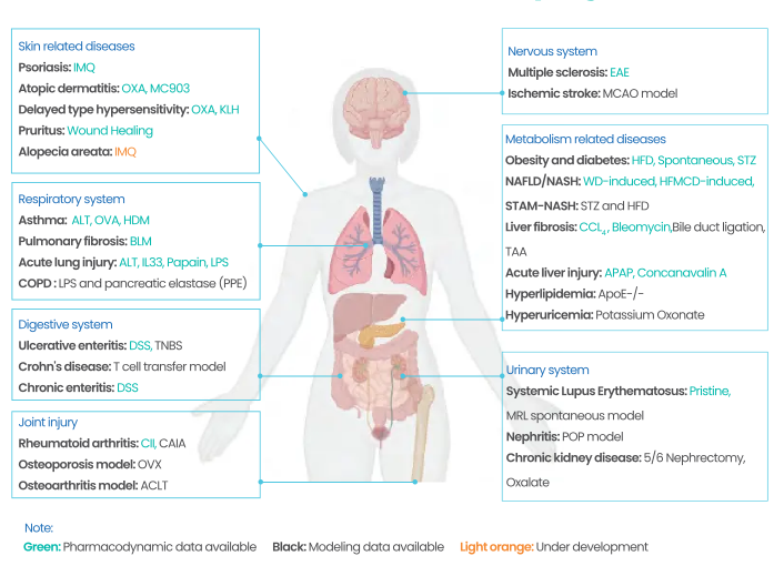 百奥赛图构建系列自免及代谢疾病模型,具备完善的体外检测及病理分析平台,可评估自免代谢药物药效。