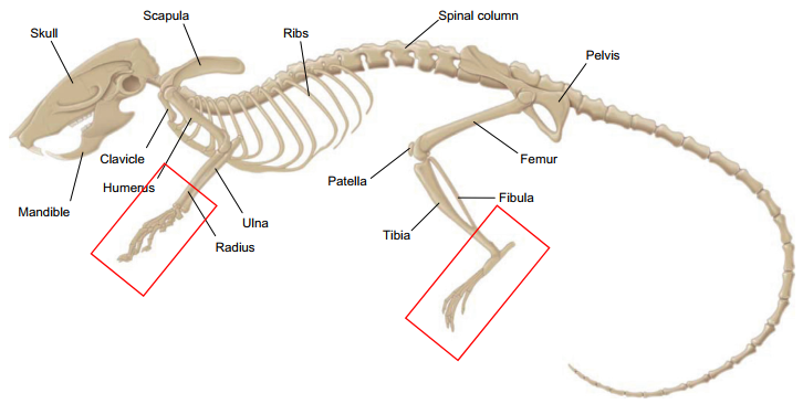 图3. 啮齿动物(小鼠)骨骼结构[3]