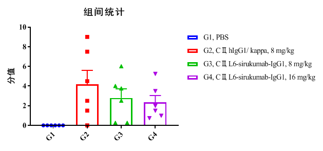 抗人IL-6抗体sirukumab(内部合成)在小鼠关节炎模型(CIA)中的药效作用