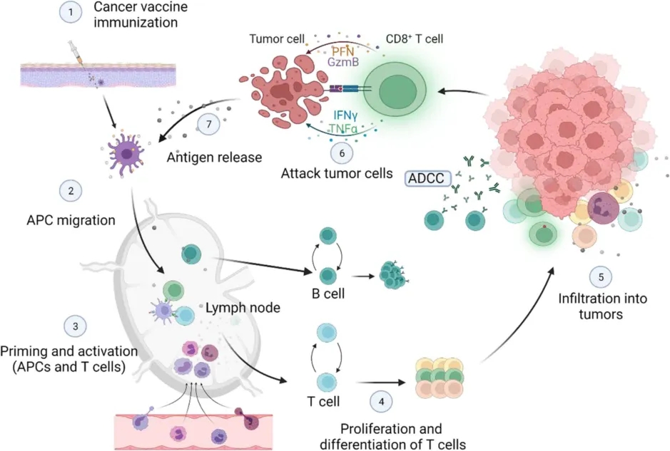肿瘤疫苗是一种免疫治疗方法,主要利用肿瘤相关抗原(TAAs)和肿瘤特异性抗原(TSA)激活患者的免疫系统,激发特异性细胞免疫和体液免疫反应,杀伤肿瘤细胞,抑制肿瘤生长。目前大多数肿瘤疫苗仍处于临床前和临床研究阶段,与传统疫苗诱导体液免疫不同的是,CD8+细胞毒性T细胞介导的细胞免疫反应对于肿瘤疫苗药效更为关键。