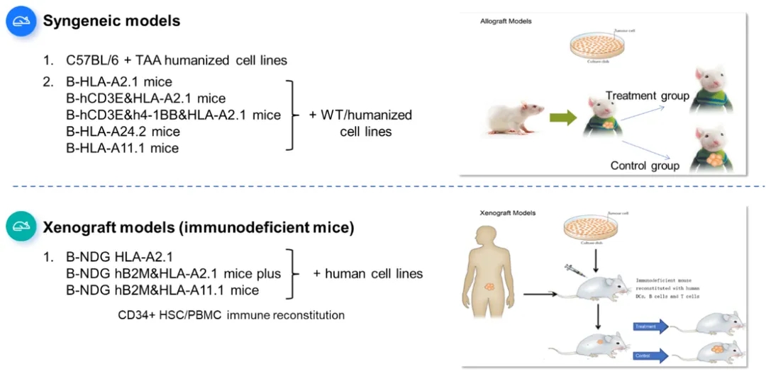 百奥赛图基于HLA人源化小鼠和HLA人源化肿瘤细胞系,建立了多种免疫原性评价和肿瘤药效动物模型,小鼠APC能呈递和识别与人类相似或相同的多肽表位,可助力肿瘤疫苗领域的研发。