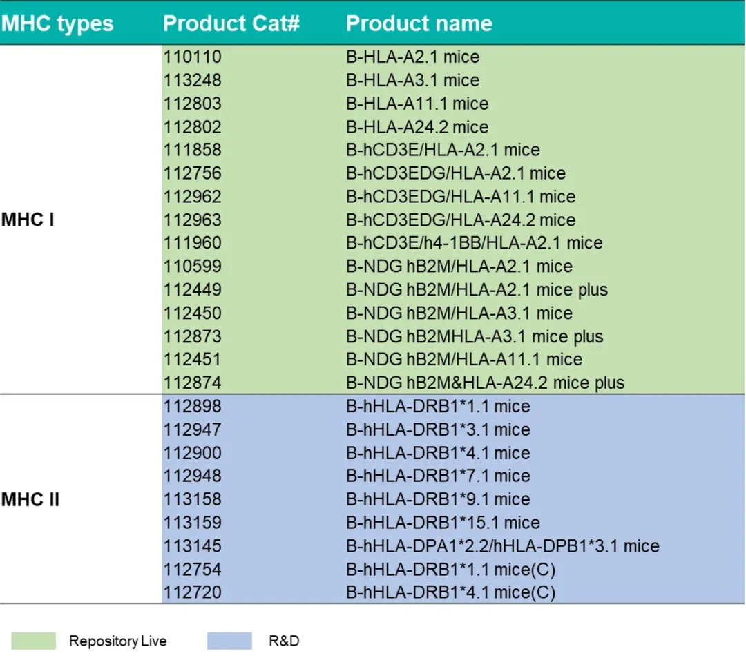 HLA人源化小鼠列表