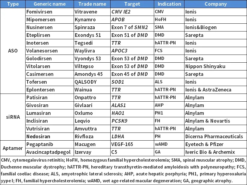[1] Miao, Yuxi , et al. "Current status and trends in small nucleic acid drug development: Leading the future." Acta Pharmaceutica Sinica B.