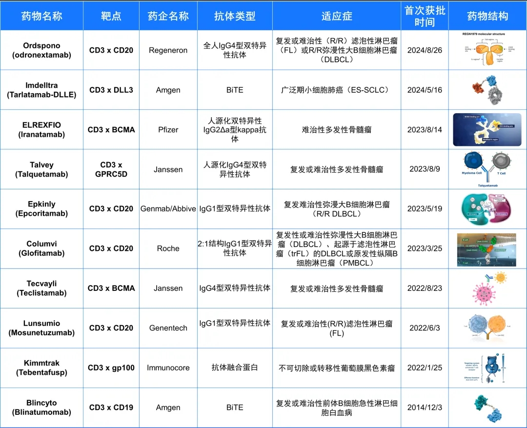 药物上市方面也取得进展。8月26日,再生元的CD3/CD20双抗odronextamab获欧洲药品管理局(EMA)批准用于治疗复发/难治性滤泡性淋巴瘤(FL)和弥漫性大B细胞淋巴瘤(DLBCL),此前5月其另一款BCMA/CD3双抗linvoseltamab获EMA批准治疗复发/难治性多发性骨髓瘤患者。