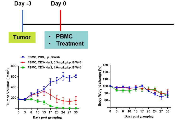 PBMC重建B-NDG模型评估CD3×Her2双抗的体内药效