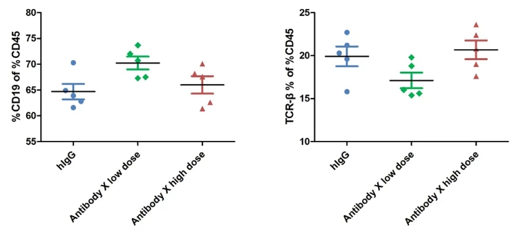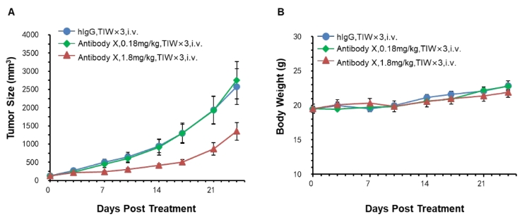 利用B-hCD3E小鼠进行两种剂量肿瘤标志物抗体X的体内药效评价