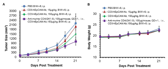 利用B-hCD3E小鼠进行CD3×EpCAM双抗的体内药效评价